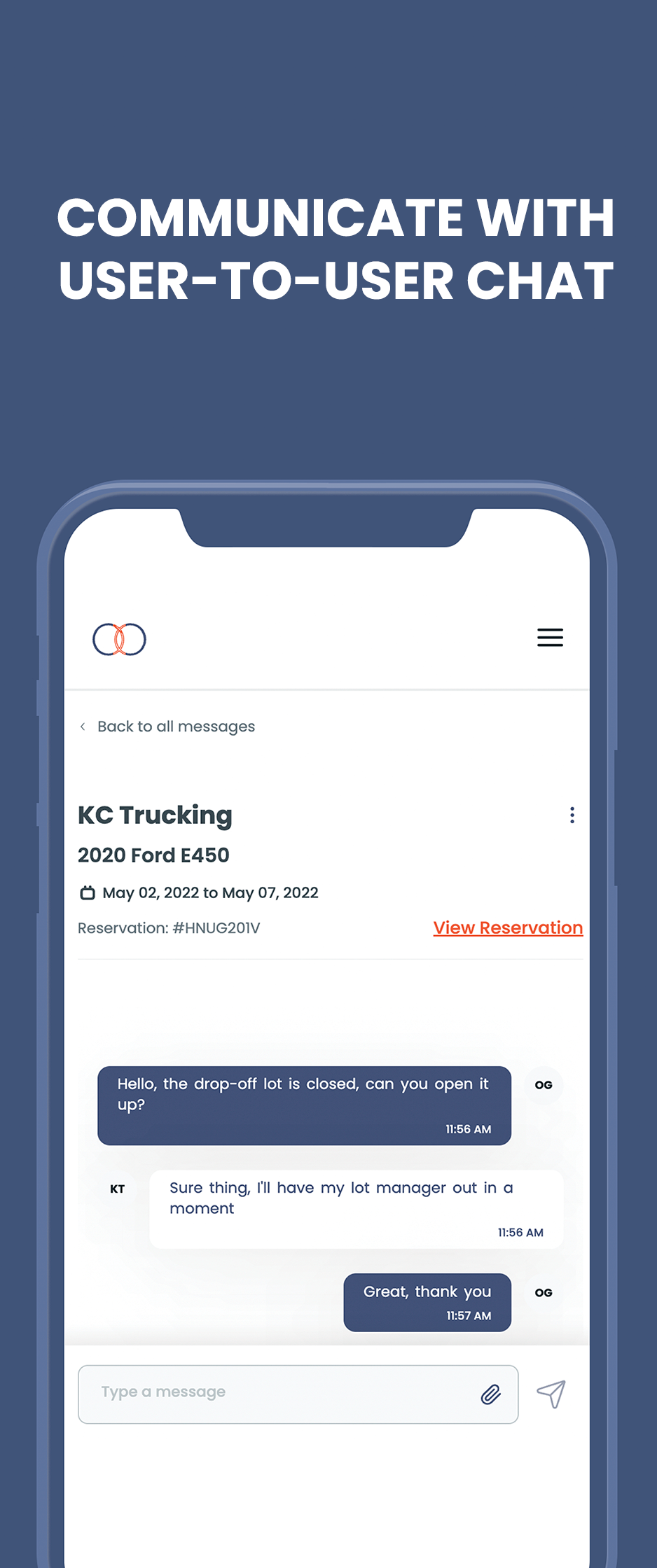 For our Renters, user-to-user chat is a great resource during a reservation. They have a streamlined way to speak with the vehicle Owner that is easy to reference.